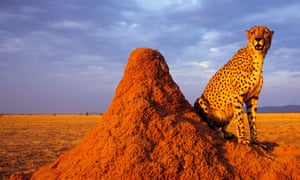 A termite mound – and cheetah – in Namibia. Photograph: Alamy Stock Photo